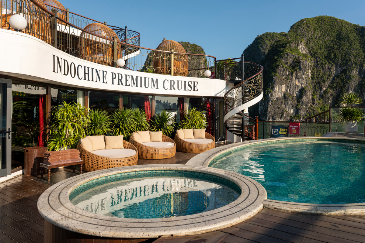 Elija entre un refrescante baño o una subida a la cima para disfrutar de impresionantes vistas de la bahía de Ha Long.